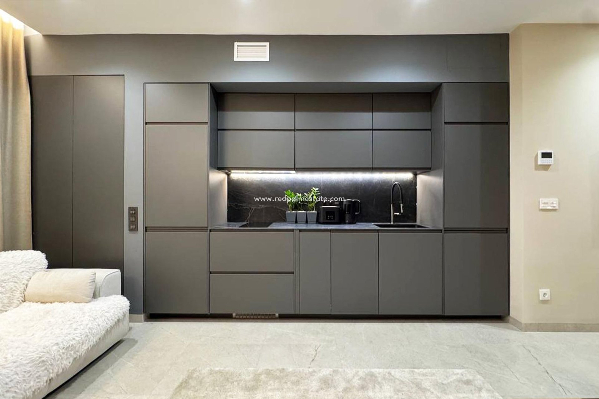 Stilig 1-roms leilighet på 45 m² i hjertet av Torrevieja, kun 250 meter fra Los Locos-stranden. Leiligheten tilbyr en lys stue med panoramavinduer fra gulv til tak, et fullt utstyrt moderne kjøkken og et komfortabelt soverom med innebygd garderobe og elegante detaljer. Badet har regndusj, steinservant og gulvvarme. Klimakontroll, LED-belysning og privat terrasse fullfører dette sofistikerte middelhavstilfluktsstedet – ideelt som feriebolig eller permanent bolig under den spanske solen.